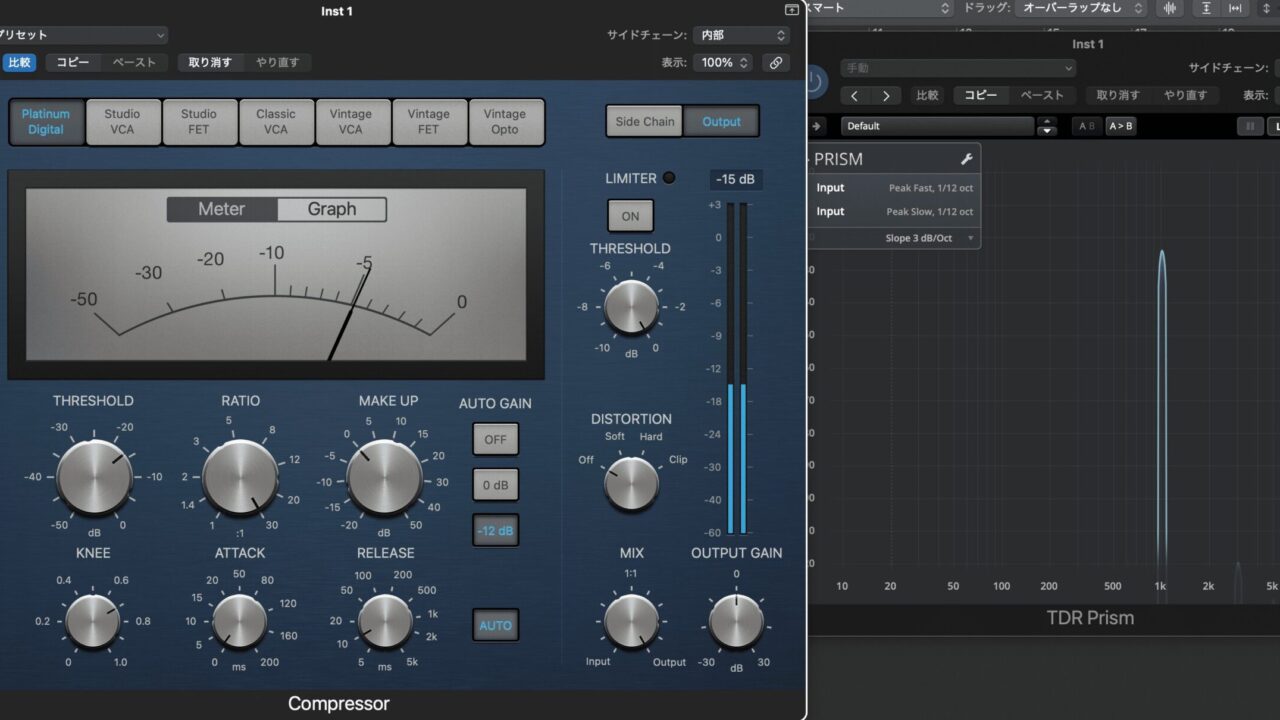 Logic Pro Compressorは、これらの特性を忠実に再現し、単なるレベル調整を超えた「音色的な処理」を可能にしています。